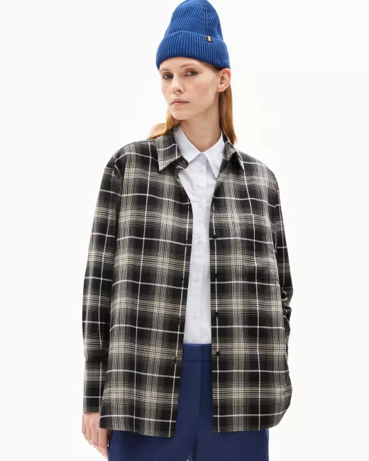 Chemisier coupe ample en coton bio EASSAAL CHECK Black-dark amber
