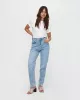 Le jeans Nora est un jeans fuselé ample. Il a un style qui s'inspire des coupes denim des années 80, également connu sous le nom de jeans mom fit. Ce jeans est ample à la taille et se rétrécit du genou à la cheville. Les particularités de ce modèle :