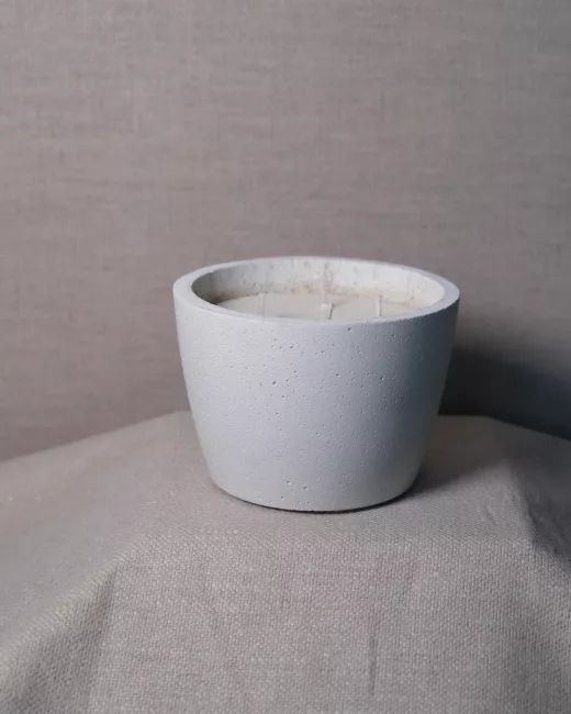100% plantaardige sojawaskaars gegoten in een handgemaakte en herbruikbare betonnen houder